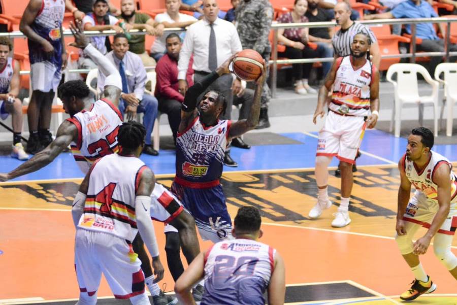 Pueblo Nuevo dominó el primer cuarto 31-22, pero Plaza se adjudicó el segundo 23-13 para irse al descanso con ventaja mínima de 45-44.